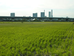 四季折々の水田風景とさいたま新都心高層ビル。埼玉のトカイナカ(都会と田舎)を実感。