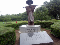 昔はこの辺り一面がたんぼであり、秋の収穫期には雀等の鳥が折角実った稲を食い荒らしに来るので、これを防ぐために「案山子」をあちこちに立てた。文部省唱歌に歌われている「案山子」は、この風景を歌ったもので、園内には案山子の記念碑が建てられている。