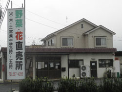 近隣の農家が生産した野菜・果物を事務所下の駐車場に並べて販売。新鮮さが受けて、販売日には近所の奥さん方が押し寄せて大変な盛況。